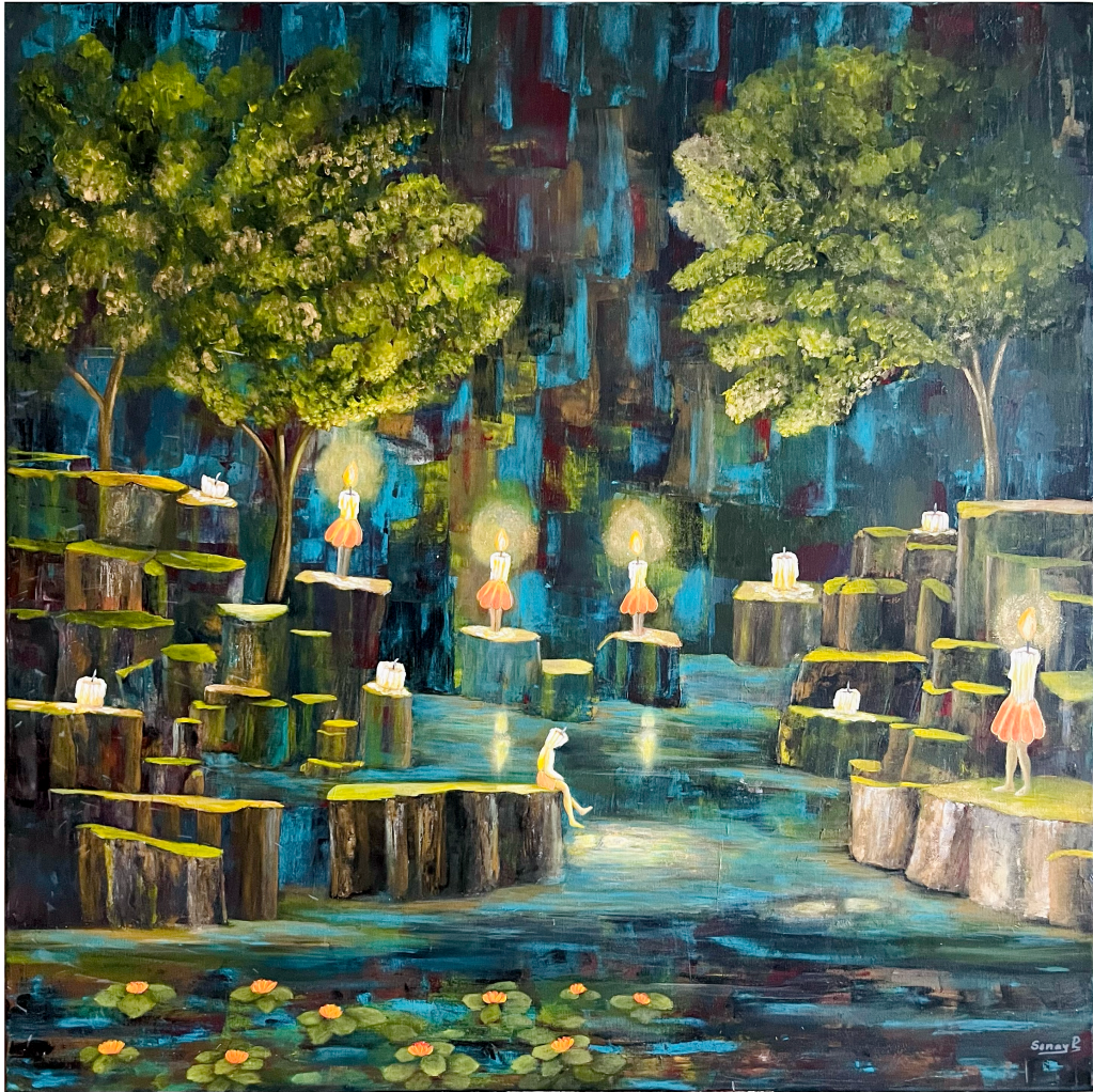 “Reflection” is a painting about silence, about a solitude that is not empty, and about hope that does not fade. It reminds us that even when we feel extinguished, our light still exists — reflected in the depths of the soul.